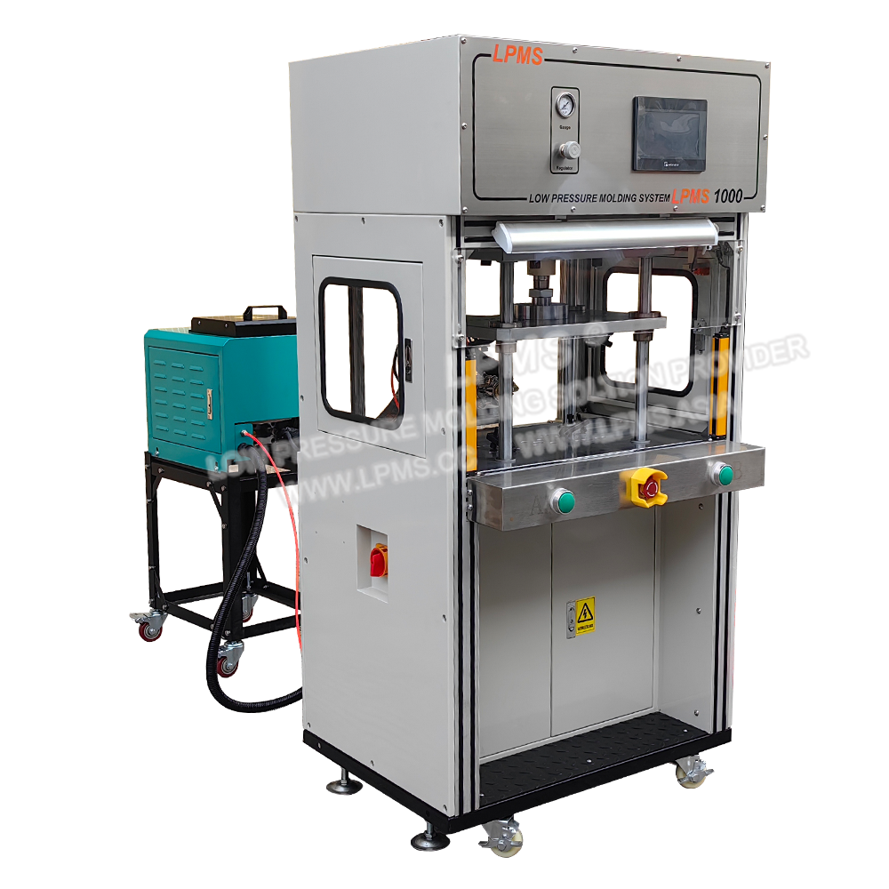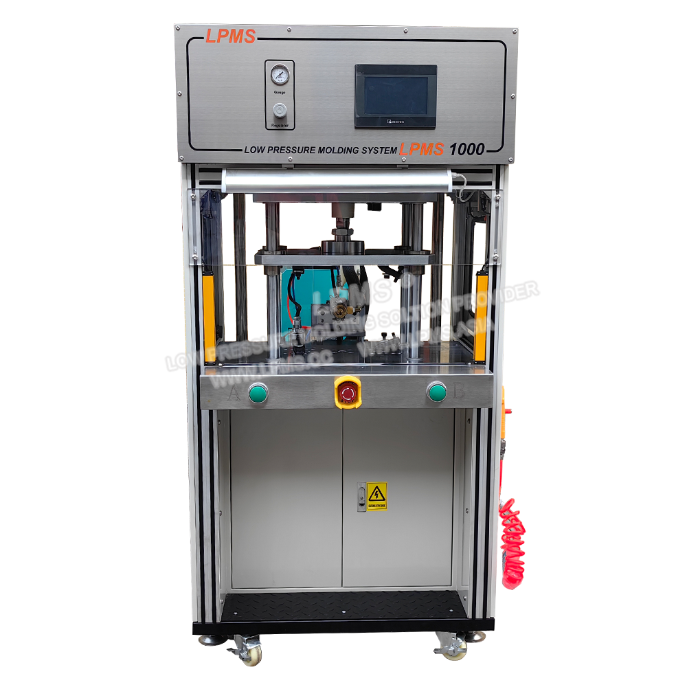 側式熱熔膠低壓注塑機系列的注膠咀位于模具側面,當產品較大時模具只能設計為一模一穴,采用側式注膠可避免在產品正上方注膠而留下進料痕影響產品美觀。適合封裝尺寸較大或外形復雜產品。