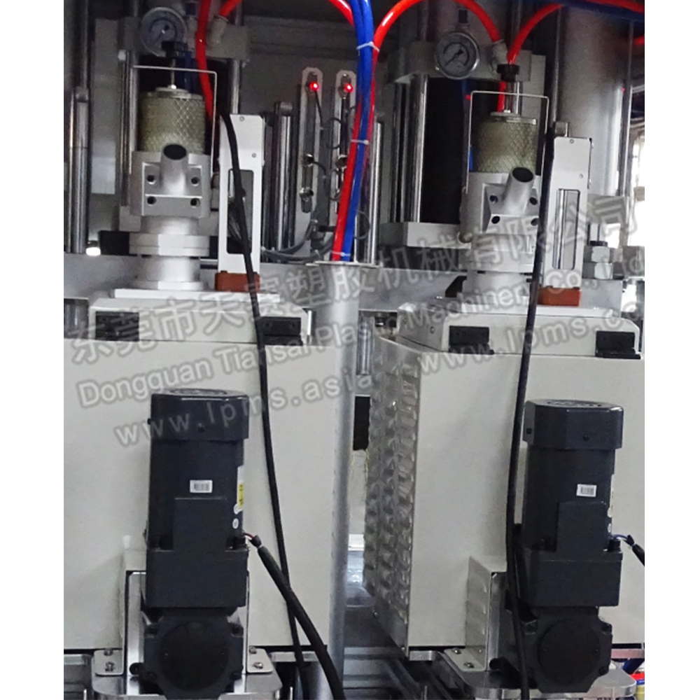 雙工位單槍側式注膠, 給予較復雜的多模穴與滑塊機構的模具較大的應用空間。