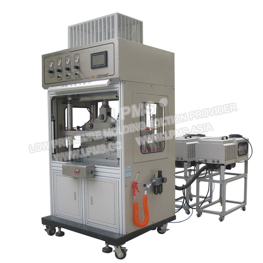 側式注膠系列, 給予多模穴與滑塊機構的模具較大的運用空間,適用於各式低壓熱熔膠成型樹脂對產品注膠包封。制程壓力低(0-6MPa),不會損傷零部件,無化學反應,成型快速,冷卻即成型,成型後產品具有絕緣與防水等性能。廣泛應用於:電池、感測器、線圈、線束、連接器、PCBA等精密敏感電子元器件的封裝與保護。
